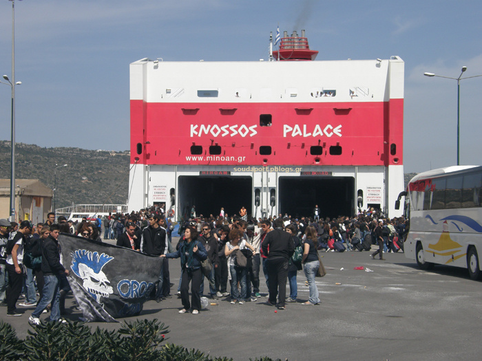 Σήμερα επέστρεψαν οι μαθητές, που είχαν καταφθάσει την Παρασκευή με το ΦΑΙΣΤΟΣ ΠΑΛΑΣ στα Χανιά, στις πόλεις τους, με το ΚΝΩΣΣΟΣ ΠΑΛΑΣ. Το πλοίο προσέγγισε το λιμάνι της Σούδας περί ώρα 12:20(φωτ 1) και αφού επιβιβάστηκαν(φωτ 2) περίπου 1800(φωτ 3) μαθητές και 30 λεωφορεία αναχώρησε στις 13:25(φωτ 4)…
