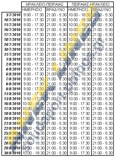 Παράλληλα ανακοινώθηκαν και τα δρομολόγια για το Ηράκλειο με τα Ε/Γ-Ο/Γ ΚΡΗΤΗ Ι και ΚΡΗΤΗ ΙΙ ως εξής: