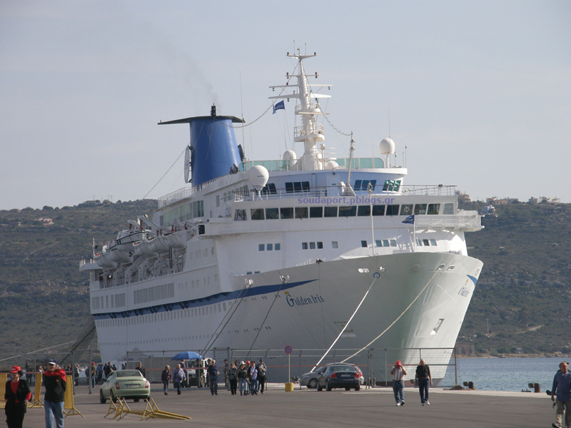 Στις 8:45 σήμερα το πρωί κατέπλευσε στο λιμάνι της Σούδας το Golden Iris της MANO Cruises, που έχει ως ενδιάμεσο σταθμό στην κρουαζιέρα του. Εκατοντάδες ταξιδιώτες ξεχύθηκαν στην Σούδα ενώ αρκετοί συνεχίζουν με λεωφορεία σε εκδρομές που έχει προγραμματίσει η εταιρεία στο νομό Χανίων. Το πλοίο αναμένεται να αναχωρήσει στις 14:00 το μεσημέρι.