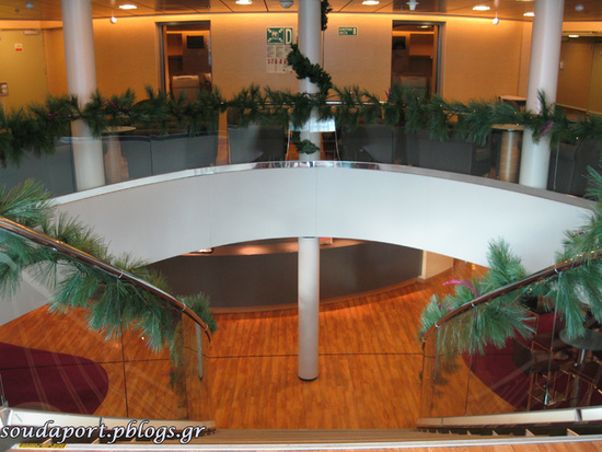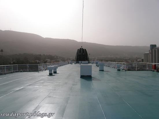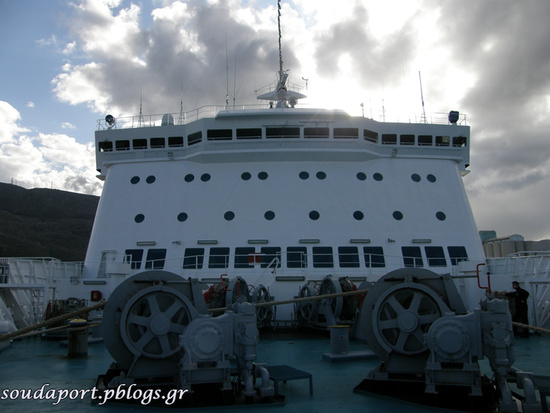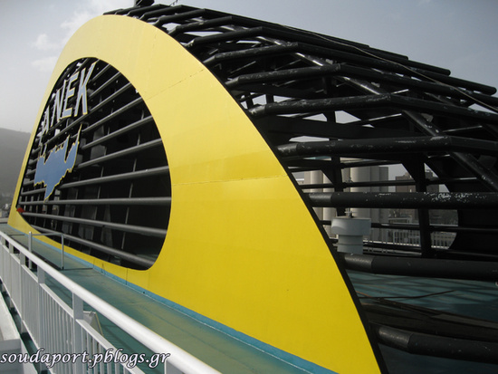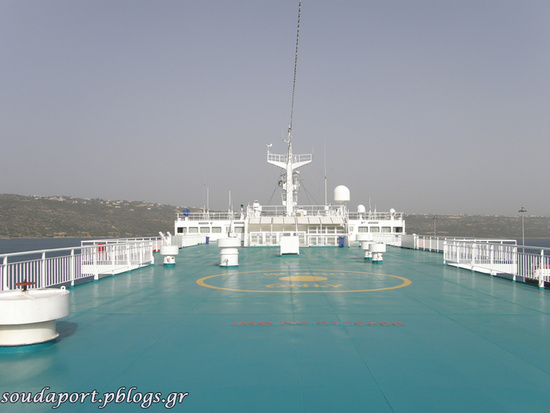 Επιβατηγό-Οχηματαγωγό ΕΛΥΡΟΣ. Ένα πλοίο με αρκετή φαντασία, που έγινε το στολίδι των Χανίων. Συναντάμε το πλοίο δεμένο στο λιμάνι της Σούδας και ανεβαίνουμε από τις σκάλες στο ντεκ 7 που είναι το πρώτο κατάστρωμα των επιβατών. Εκεί συναντάμε την υποδοχή του πλοίου, τον χώρο της reception και την reception. Προχωρώντας προς την πλώρη συναντάμε το Self Servise και το A la carte restaurant του πλοίου. Καθ’ όλο το μήκος αυτού του διαδρόμου υπάρχουν τραπεζάκια με καρέκλες που βλέπουν στο απέραντο γαλάζιο της θάλασσας. Φτάνουμε στο πλώριο σαλόνι του πλοίου με θέα στην πλώρη. Πηγαίνοντας τώρα προς τα πρύμα, θα συναντήσουμε το μπαρ του πλοίου και τις σκάλες που θα μας οδηγήσουν στο κατάστρωμα Νο 8, όπου βρίσκονται οι αεροπορικές θέσεις και οι καμπίνες του πλοίου. Βγαίνοντας έξω, είμαστε στο δεύτερο εξωτερικό κατάστρωμα του πλοίου που έχει θέα στου τρεις καταπέλτες του πλοίου και εκεί βρίσκεται και το μπαρ ΩΚΕΑΝΟΣ . Αφού ξαναμπούμε μέσα, οδηγούμαστε στις καμπίνες του πλοίου μέσα από χαώδης διαδρόμους. Το πλοίο διαθέτει 4κλινες καμπίνες με τεχνητό φινιστρίνι καθώς και διάφορες υδάτινες ταπετσαρίες. Επίσης συναντάμε δίκλινες καμπίνες, και πλώρα τις λουξ καμπίνες με διπλό κρεββάτι και καναπέ, καθώς και ατέλειωτη θέα στην πλώρη. Ανεβαίνοντας το κλιμακοστάσιο, φτάνουμε στο κατάστρωμα Νο 9 με την μοντέρνα τσιμινιέρα του πλοίου. Κοιτάζοντας προς τα πλώρα βλέπουμε την γέφυρα και μόλις φτάσουμε βλέπουμε πρύμα το υπόλοιπο ντεκ και το ελικοδρόμιο. Μπαίνουμε μέσα στην γέφυρα, τον εγκέφαλο του πλοίου, από εκεί που κάθε μέρα ο κ. Καβρός και οι υπόλοιποι ναυτικοί στο πλοίο μεταφέρουν δεκάδες επιβάτες. Από την αριστερή βαρδιόλα βλέπουμε όλο το υπόλοιπο πλοίο, ενώ βλέπουμε την πλώρη από το ψηλότερο σημείο του πλοίου. Λέμε να της κάνουμε μία επίσκεψη και να θαυμάσουμε τον καθρέπτη του πλοίου. Από εκεί κατεβαίνουμε στο γκαράζ του πλοίου, από όπου και αποβιβαζόμαστε, έχοντας κάνει ένα αξέχαστο ταξίδι με την υπογραφή ANEK LINES…