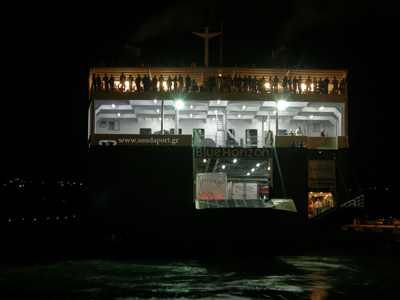 Με 268 επιβάτες, 99 ΙΧ, 8 φορτηγά και 3 δίκυκλα κατεβαίνει αυτή τη στιγμή το BLUE HORIZON με αναμενόμενη ώρα άφιξης στα Χανιά στις 22:05. Σε αυτό το τελευταίο δρομολόγιο από Χανιά για Πειραιά, θα ταξιδέψουν 180 επιβάτες, 35 ΙΧ, 16 φορτηγά και 3 δίκυκλα.