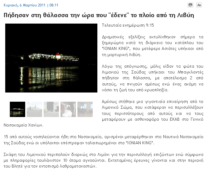 Παρά τις ενέργειές μας έτσι ώστε να αποφευχθεί η υποκλοπή φωτογραφιών και ανάρτησή τους αλλού, από το http://www.soudaport.gr, σήμερα ήρθαμε αντιμέτωποι με το πρώτο περιστατικό, καθώς είμαστε βέβαιοι ότι θα ακολουθήσουν κι άλλα. Η ιστοσελίδα flashnews.gr ανάρτησε φωτογραφία του ΕΞΠΡΕΣ ΠΗΓΑΣΟΣ, που εμείς έχουμε αναρτήσει από τον απόπλου του πλοίου από την Σούδα την Τετάρτη 23/02/11, σε ανάρτηση που δεν αφορούσε το πλοίο, χωρίς να αναφέρει τουλάχιστον την πηγή.