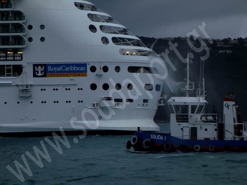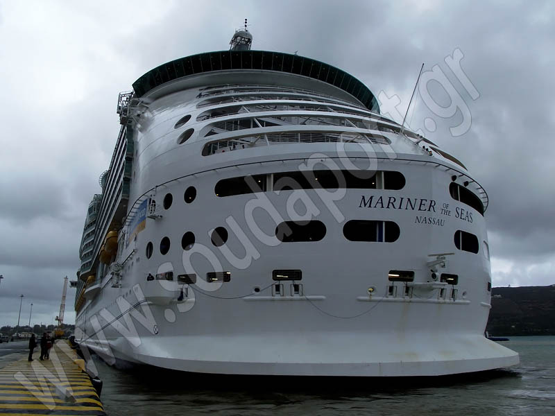 Στις 8:00 το πρωί μπήκε στον, ομιχλώδη σήμερα, κόλπο της Σούδας το γιγαντιαίο Mariner Of The Seas της Royal Carribean Cruises. Συνοδεία του τρία ρυμουλκά τα οποία το καλωσόρισαν με πίδακες νερού. Στις 8:30 έδωσε τον πρώτο κάβο και έτσι σηματοδοτήθηκε η πρώτη άφιξη κρουαζιερόπλοιου της RCC στην Σούδα. Κατόπιν ακολούθησε κέρασμα στην προβλήτα ενώ τους επισκέπτες διασκέδασε το χορευτικό συγκρότημα ΑΡΟΔΑΜΟΣ με κρητικούς παραδοσιακούς χορούς.