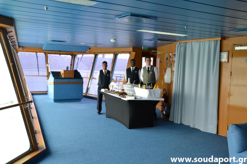 Επίσης, στις 11:00 το πρωί επί του πλοίου και πάνω στη γέφυρα πραγματοποιήθηκε τιμητική εκδήλωση μεταξύ του δημάρχου Χανίων κ. Σκουλάκη και του πλοιάρχου κ.