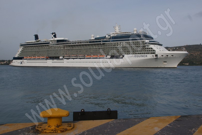 Στις 9:15 εισήλθε για πρώτη φορά στα ιστορικά του στον κόλπο της Σούδας το δεύτερο μεγαθηρίο της Celebrity Cruises, CEBRITY EQUINOX. Το πλοίο με τον πρώτο αυτό κατάπλου του έρχεται να διαψεύσει τα περί περιορισμένου βυθίσματος  και μήκους πλοία που μπορούν να καταπλεύσουν, καθώς τόσο αυτό, όσο και το αδερφό του CELEBRITY SOLSTICE στις 19 Ιουλίου απέδειξαν ότι το λιμάνι μπορεί να φιλοξενήσει τα δεύτερα σε μήκος κρουαζιερόπλοια στον πλανήτη. Με μήκος 317.2 m, πλάτος 36.9 m και βύθισμα 8.3 m είναι το μεγαλύτερο πλοίο που καταπλέει στην Σούδα.