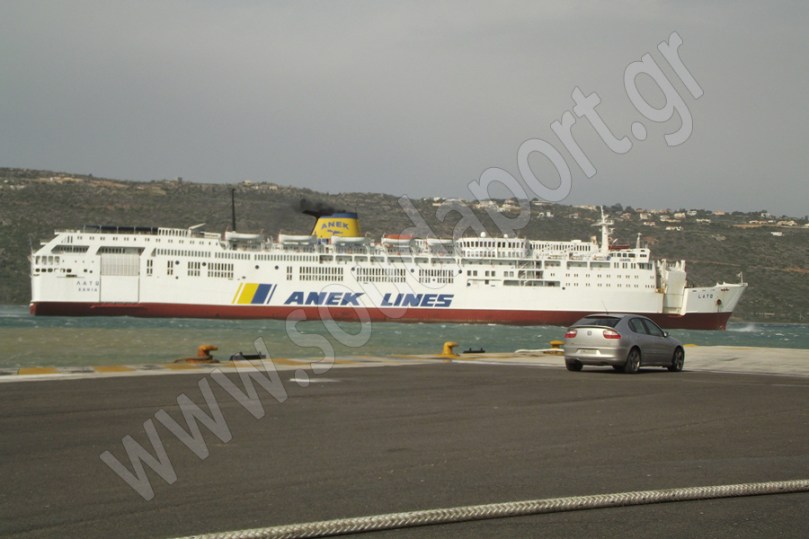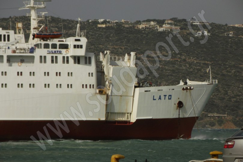 Αυτή την στιγμή το ΛΑΤΩ βρίσκεται στην θέση πρόσδεσης του με την πρύμη να έχει ανοιχτεί στα αριστερά. Μόνο οι κάβοι τις πλώρης το κρατάνε, ενώ της πρύμης έσπασαν. Στο λιμάνι επικρατούν άνεμοι ταχύτητας 50 και πλέον κόμβων με την θάλασσα να πνίγει κυριολεκτικά το ντόκο ενώ από το πρωί έχει εκδοθεί γενικό απαγορευτικό απόπλου για όλα τα λιμάνια της Κρήτης, της Αττικής, των Κυκλάδων, του Βορειοανατολικού Αιγαίου και των Δωδεκανήσων.