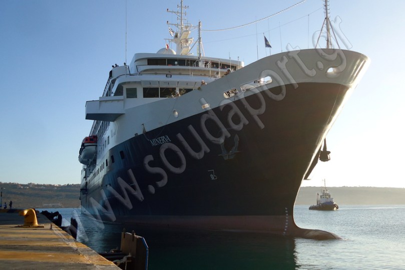 Με 2 κρουαζιερόπλοια ξημέρωσε η σημερινή Παρασκευή στην Σούδα. Στις 6:00 κατέπλευσε όπως κάθε Παρασκευή το NAVIGATOR OF THE SEAS ενώ στις 8:00 κατέπλευσε και το MINERVA της εταιρείας SWAN HELLENIC, με 330 περίπου επιβάτες, και αναμένεται να αναχωρήσει στις 16:00. Το εν λόγω πλοίο μας επισκέφθηκε και πριν 1,5 περίπου χρόνο, στις 1 Μαΐου 2011.