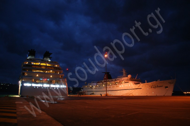 Να σημειωθεί ότι τα πλοία της εταιρείας συνήθως παρέμεναν αρόδου στα Χανιά αλλά ακόμα και αύριο ο καιρός δεν θα επέτρεπε την έξοδο των επιβατών. Έτσι το τελευταίο κρουαζιερόπλοιο του 2012 έδεσε στις 17:45 στην Σούδα και θα παραμείνει για 24 ώρες στο Χανιώτικο επίνειο κλείνοντας με τον καλύτερο τρόπο τον τομέα της κρουαζιέρας που αποφέρει τα μέγιστα στην οικονομία του τόπου.