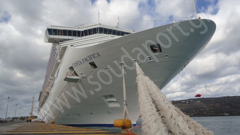 Λίγο μετά τις 11:00 το πρωί κατέπλευσε στο λιμάνι της Σούδας για πρώτη φόρα στην ιστορία του το κρουαζιερόπλοιο Costa Pasifica. Το πλοίο-έκπληξη για τα Χανιά πέρασε το κεφάλι του λιμανιού της Σούδας λίγο μετά τις 10:55 και με μια γρήγορη δεξιά στροφή έδεσε στο Cruise Terminal. Λίγο μετά τις 18:30 το απόγευμα αναμένεται να αναχωρήσει για την Haifa.