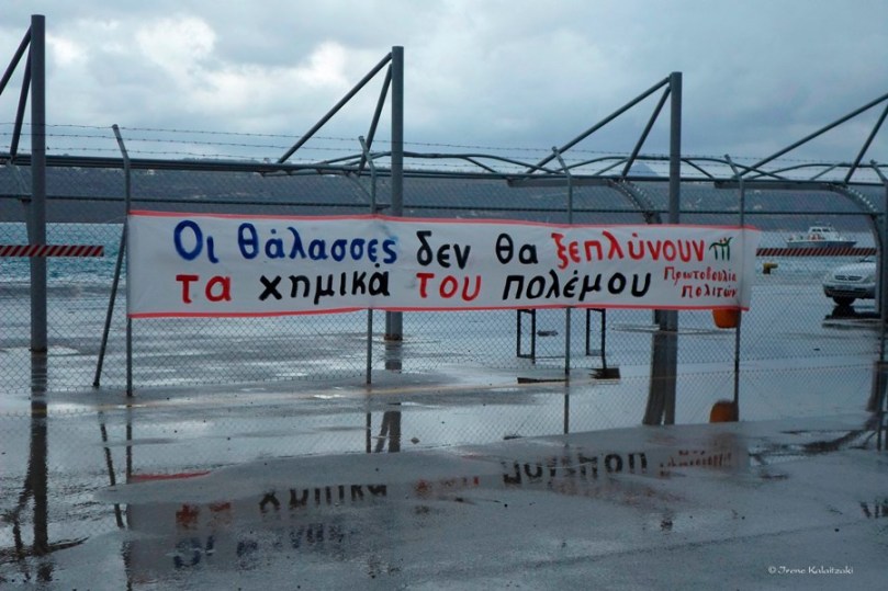 Εκατοντάδες πολίτες και φορείς όλης της Κρήτης συγκεντρώθηκαν το μεσημέρι της Κυριακής στον Εμπορικό Λιμένα της Σούδας, δηλώνοντας αντίθετοι στην διάλυση με την μέθοδο της υδρόλυσης των χημικών όπλων της Συρίας στην Μεσόγειο και δη, δυτικά των Χανίων.