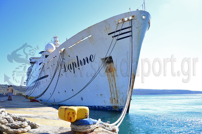 Με τρείς μακρόσυρτους συριγμούς από την γερασμένη πλέον μπουρού της, η πριγκίπισσα Δάφνη έβαλε πλώρη λίγο μετά τις 10 το πρωί για την Ινδία. Με τον τελευταίο κάβο που την κρατούσε εδώ να ξεκαπελώνεται, η Δάφνη κάνει ανάποδα και ξεκολλάει από τον προβλήτα Αδρίας που την φιλοξενούσε για 1,5 χρόνο.