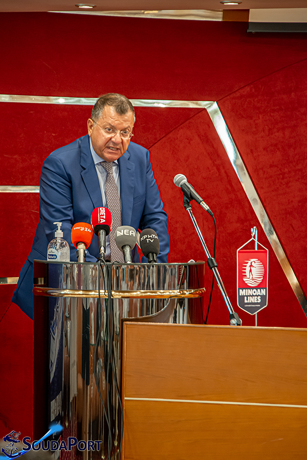 Τον λόγο πήρε ο Υπουργός Ναυτιλίας και Νησιωτικής Πολιτικής κ. Ιωάννης Πλακιωτάκης, ο οποίος κατά την ομιλία του εξήρε την προσπάθεια των Μινωικών Γραμμών και την συμβολή τους στο τουριστικό προϊόν, ειδικά στην εποχή που διανύουμε και δήλωσε ότι η πολιτεία θα σταθεί αρωγός σε ενέργειες που βοηθούν την ανάπτυξη της οικονομίας.