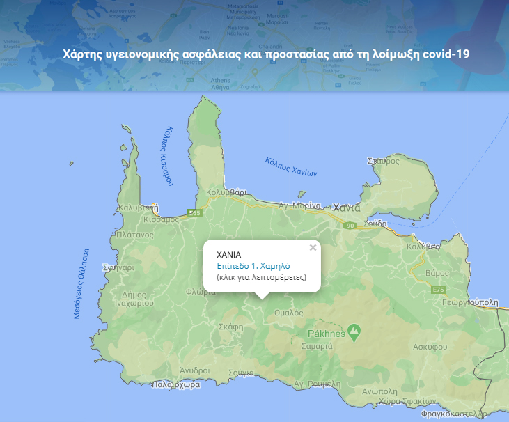 Σύμφωνα με τον χάρτη, οι περιφερειακές ενότητες χαρακτηρίζονται από 4 επίπεδα επιτήρησης, προληπτικών μέτρων και κανόνων: Επίπεδο 1 (Ετοιμότητας), Επίπεδο 2 (Επιτήρησης), Επίπεδο 3 (Αυξημένης Επιτήρησης), Επίπεδο 4 (Αυξημένου Κινδύνου).