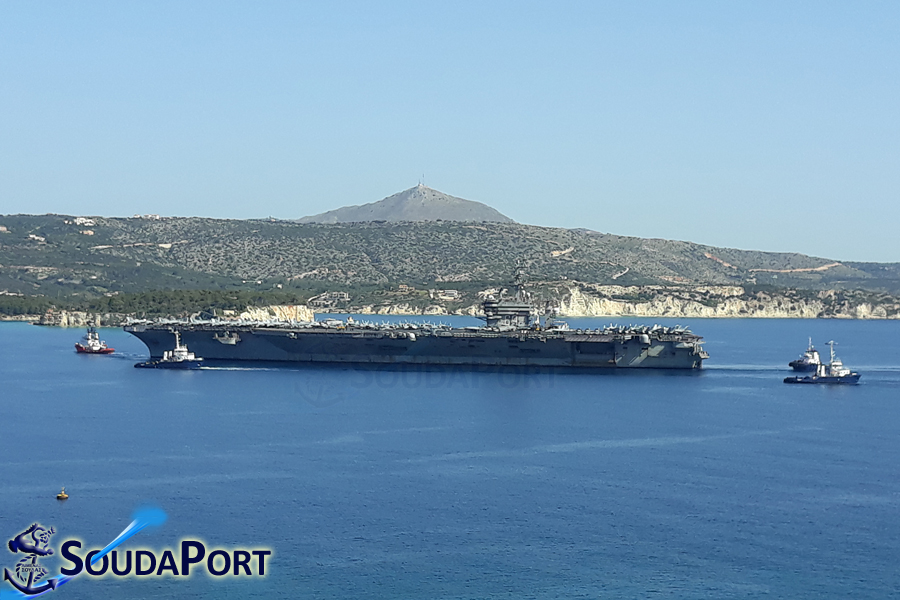 Στην προβλήτα Κ14 στο Μαράθι έδεσε λίγο μετά τις 10:30 το αεροπλανοφόρο των ΗΠΑ, USS Dwight D. Eisenhower. Πρόκειται για ένα πυρηνοκίνητο αεροπλανοφόρο, κλάσης Nimitz, που διαθέτει ο Αμερικανικός στόλος. Επισκέπτεται την Σούδα μετά από κοινές ασκήσεις με το Πολεμικό Ναυτικό και την Πολεμική Αεροπορία ενώ στη δύναμη συνοδείας του στην Ανατολική Μεσόγειο συνοδεύτηκε από την φρεγάτα ΨΑΡΑ. Το πλοίο θα επισκεφθεί την Τρίτη 23/03 ο Έλληνας Πρωθυπουργός.