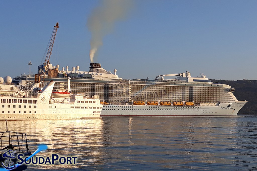 Το Anthem Of The Seas σήμερα αποδεικνύει οτι η Σούδα και τα Χανιά μπορούν να φιλοξενήσουν οποιουδήποτε μεγέθους κρουαζιερόπλοιο με την ελπίδα στο μέλλον τα Χανιά να ενταχθούν σε τακτική βάση στο πρόγραμμά τους.