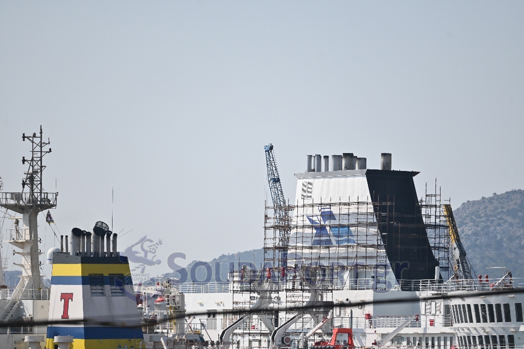 Το πλοίο έχει ήδη φορέσει στις μπάντες και την τσιμινιέρα τα λογότυπα της εταιρείας.